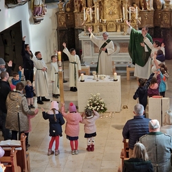 Zelebriert wurde die hl. Messe von Vikar Gerhard Hartmann und Diakon Michi Zepf, der die vielen Kinder zusammen mit den Minis zur Evangeliumsprozession und zum Vater-unser-Kreis einlud – spannende Momente für unsere Kleinen!