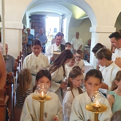 Um 10 Uhr schließlich feierten die Kinder in der Gemeinschaft der Pfarre mit Vikar Norbert Glaser und Diakon Michi Zepf die heilige Messe, gestalteten mit Texten die Feier mit und sangen begeistert ihre schönen Lieder. Ein Danke besonders an Frau Religionslehrerin Helga Krenn und das tolle Musikteam!
