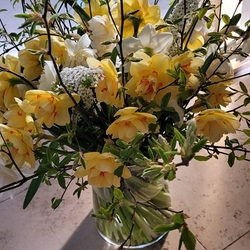 Zum Zeichen der Verehrung brachten die Gläubigen Narzissen zum enthüllten Kreuz. Das zarte Gelb der Blumen ist ein Hoffnungsschimmer. Erlösung ist in Sicht, bald bricht der Ostermorgen an!