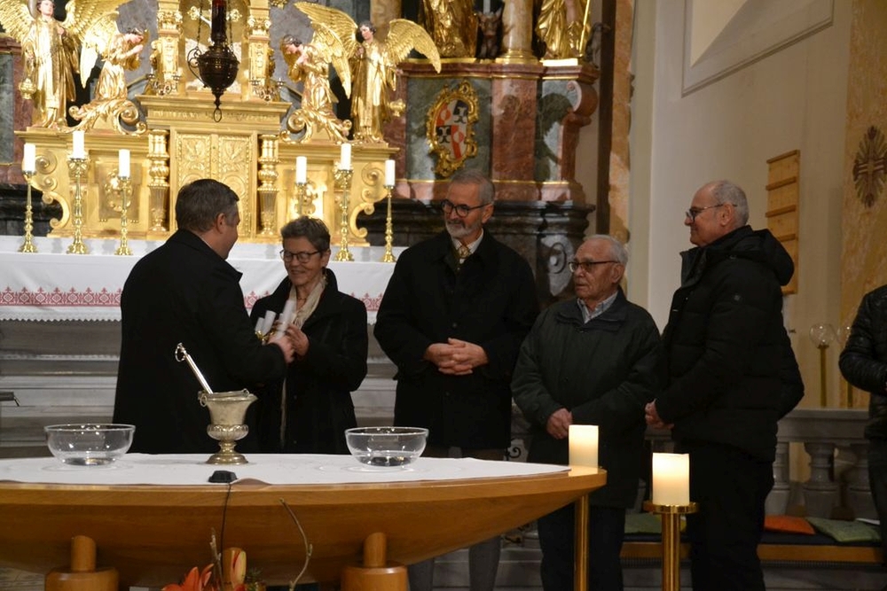 Beim Aschermittwoch-Gottesdienst mit Vikar Norbert Glaser und Diakon Michi Zepf erhielten die vielen Gläubigen, die gekommen waren, das Aschenkreuz auf die Stirn gezeichnet. Es ist ein starkes sichtbares Zeichen, das „hautnah“ an die Vergänglichkeit erinnert und uns auffordert, im Einklang mit dem Evangelium zu leben.