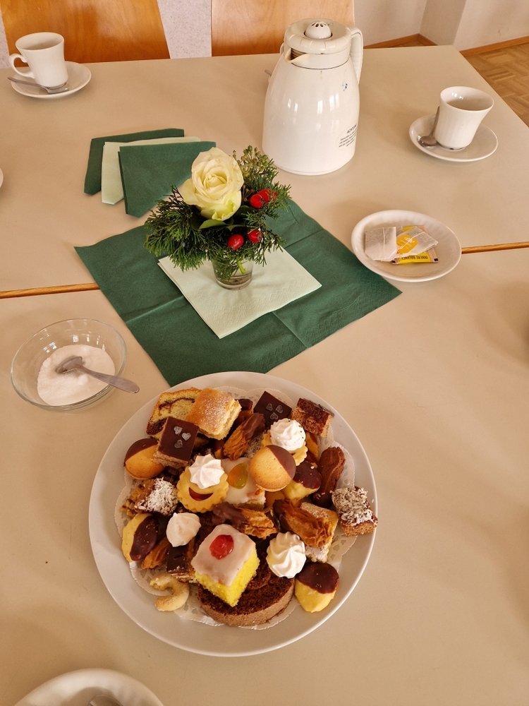 Nach dem Gottesdienst stand „Pfarrcafe des Kirchenchores“ auf dem Programm. Diese Einladung lockte viele Gäste an, was die Sängerinnen, die alles mit viel Liebe vorbereitet hatten, sehr freute!