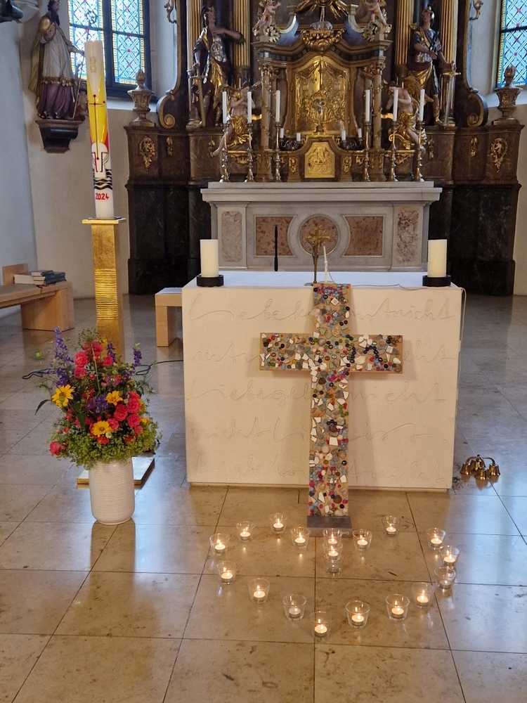 Herzlichen Dank an Ingeborg Stubenrauch für die wunderschön gestaltete Osterkerze 2024!