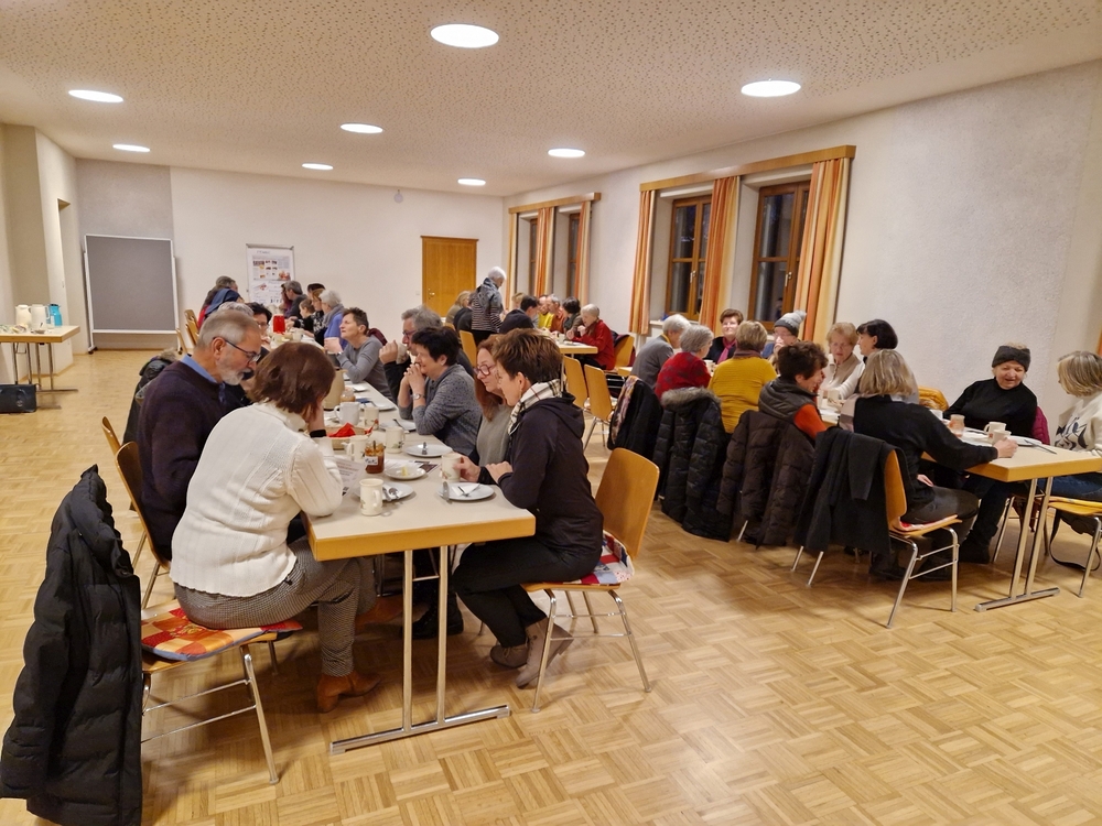 Seelisch gestärkt, begaben sich die älteren Herrschaften nach dem Gottesdienst zum gemütlichen Beisammensein ins Pfarrheim, wo Elisabeth Schöpf alle herzlich willkommen hieß.